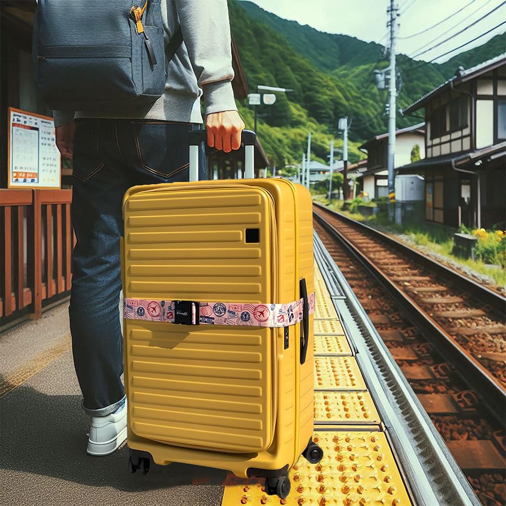 Teeoff Luggage Straps 2 Pack Suitcase Belts Travel Bag Accessories Adjustable (Stamp- 2 Pack)
